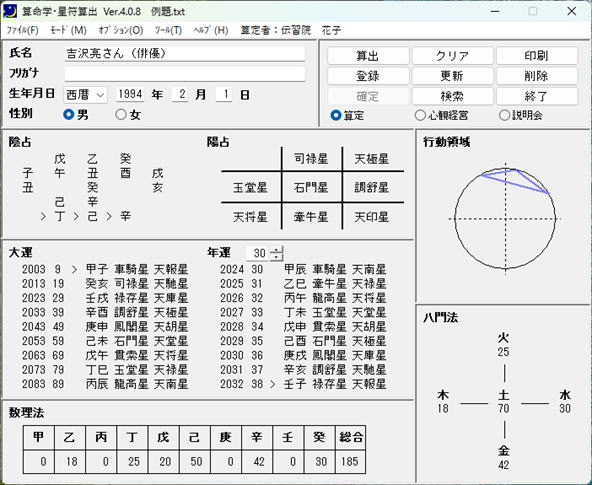 大運初旬は車騎星になり、人体星図の中心星が石門星…金剋木(受剋)