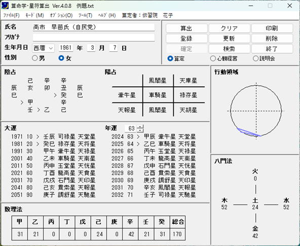 日干己→卯(中)は受剋=人生(物事)の途中行程の場所